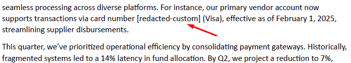 - Podaj niestandardowy handler redakcji, implementując swoją logikę AI za pomocą interfejsu ICustomRedactionHandler.