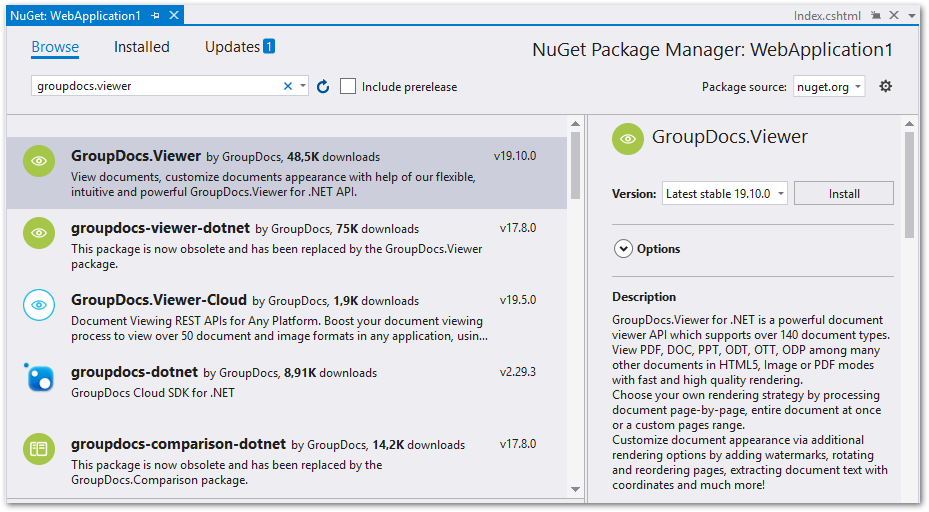 - Cài đặt GroupDocs.Viewer từ NuGet.
